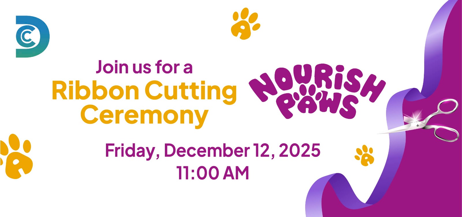 Join us as we celebrate the ribbon cutting for Nourish Paws! Come support this new pet-friendly business and be part of this special community moment.